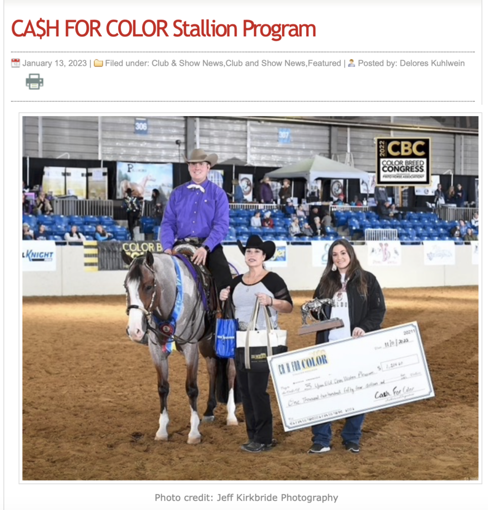Check out page 34 of the January issue of Gohorseshow GoMag for the newest CA$H FOR COLOR ad.